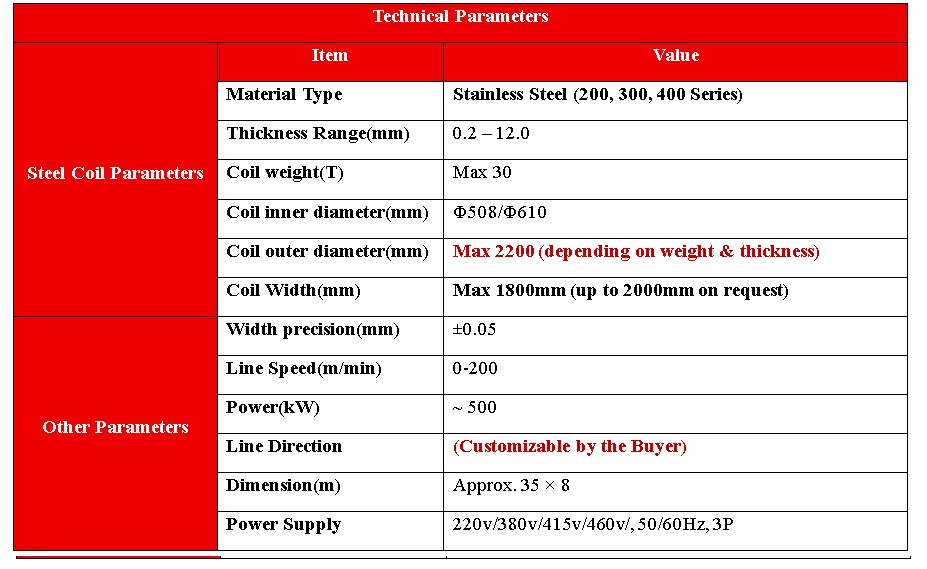 Slitting lines are essential in stainless steel processing, enabling wide coils to be precisely slit into narrower strips. Due to its unique physical and chemical properties, stainless steel requires specialized design considerations compared to carbon steel and other metals. Its higher strength and hardness demand durable, hardened slitting knives and reinforced shafts to maintain cutting accuracy, while its strong work-hardening tendency increases blade wear and affects slitting speed and force. In addition, stainless steel’s surface sensitivity makes it prone to scratches and defects, requiring precision rollers and non marking tension control systems to protect strip quality. Thermal expansion also plays a role, influencing tension control and strip alignment throughout the process. To address these challenges, LOTOS stainless steel slitting lines are engineered with advanced tooling, optimized tension management, and intelligent automation, ensuring burr free cuts, precise widths, and reliable strip integrity.The result is high quality stainless steel strips, efficient operation, and long term compliance with demanding industrial standards.